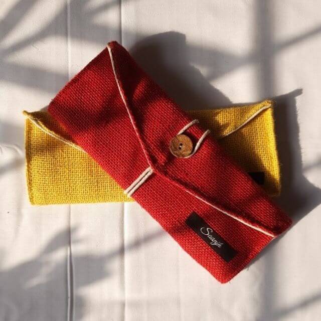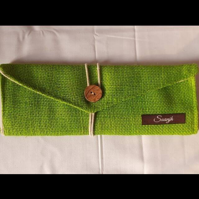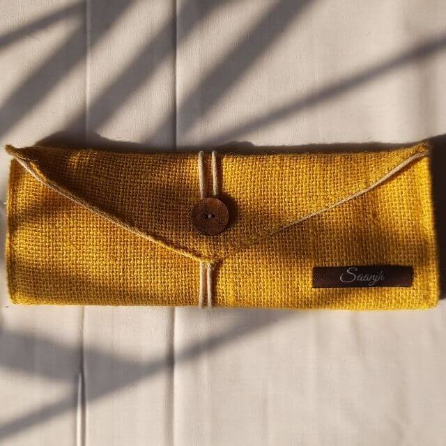 About this product: Classy. Eco-friendly. Multipurpose. Our jute pouches can be used as travel kits for your toiletries, personal cutlery or as a money purse! These are hand sewn by master artisans adept at customized jute bags. The colors are radiant and pair it with reusable bamboo cutlery (link below) to make a thoughtful gift!
