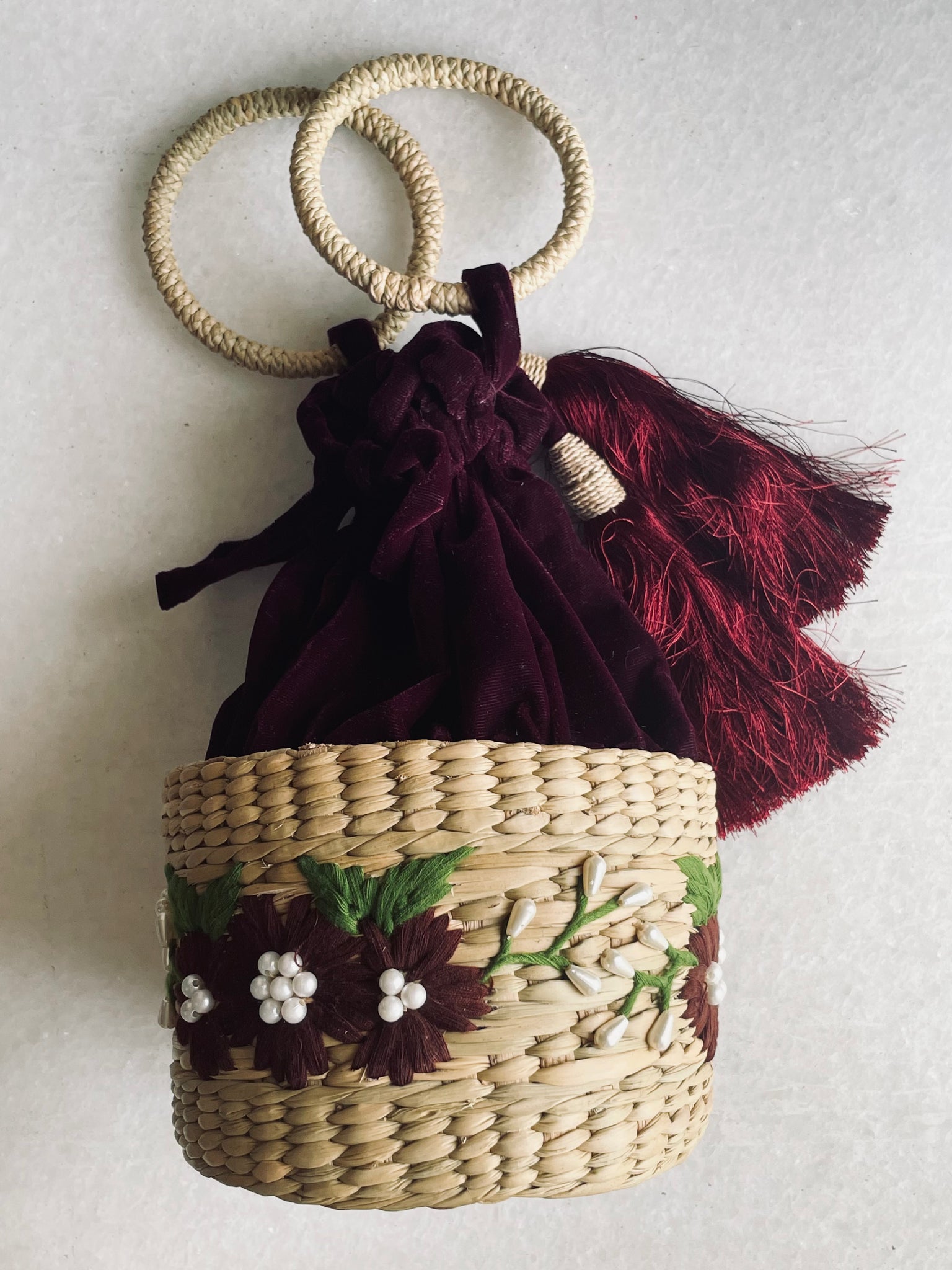 The embroidery and weave being is done by hand and each piece is unique. There may be a little difference in the embroidery compared to the image which makes each item special!